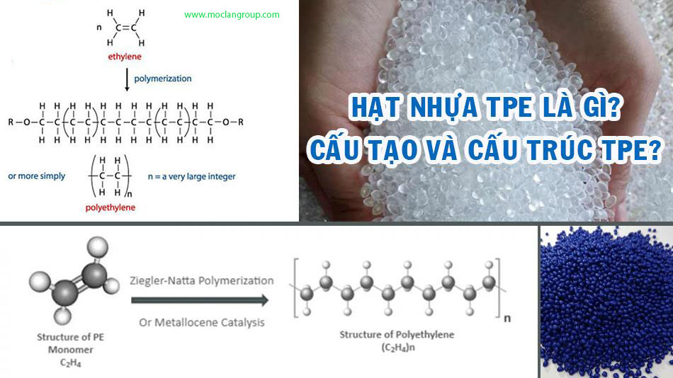 Hạt nhựa TPE được sinh ra bằng cách trùng hợp hoặc thêm các gốc olefin (monome ethylene) lại với nhau, với công thức hóa học C2H4 (Ethene). Ziegler-Natta và Metallocene là 2 chất xúc tác dùng để tạo phản ứng tạo ra Polyetylen (PE) sau đó PE được đúc và phủ lên nhau tạo thành TPE (Thermoplastic Elastomer), TPE có thể được đúc bằng PE, PP, PC, PS, ABS,.... hoặc đúng kết hợp với nhau để phục phụ cho các nhu cầu kỹ thuật.